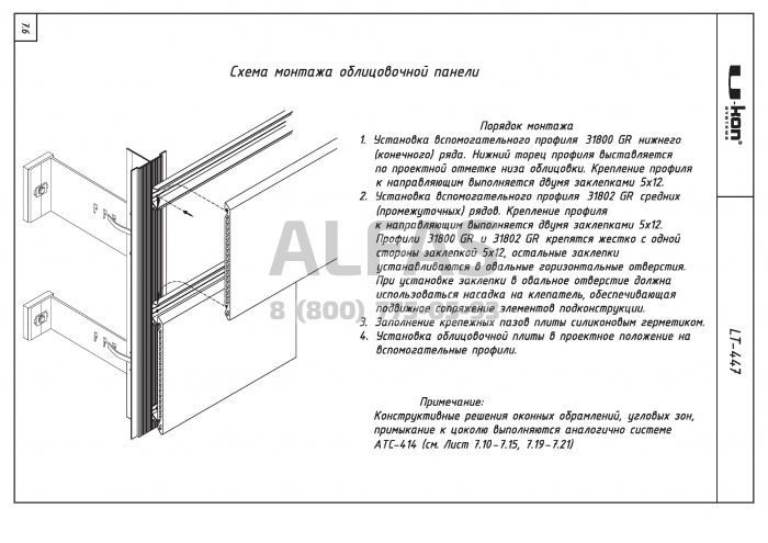 Фасадная система U-kon LT-447 Вариант 1 под Терракотовые панели и объёмная керамика